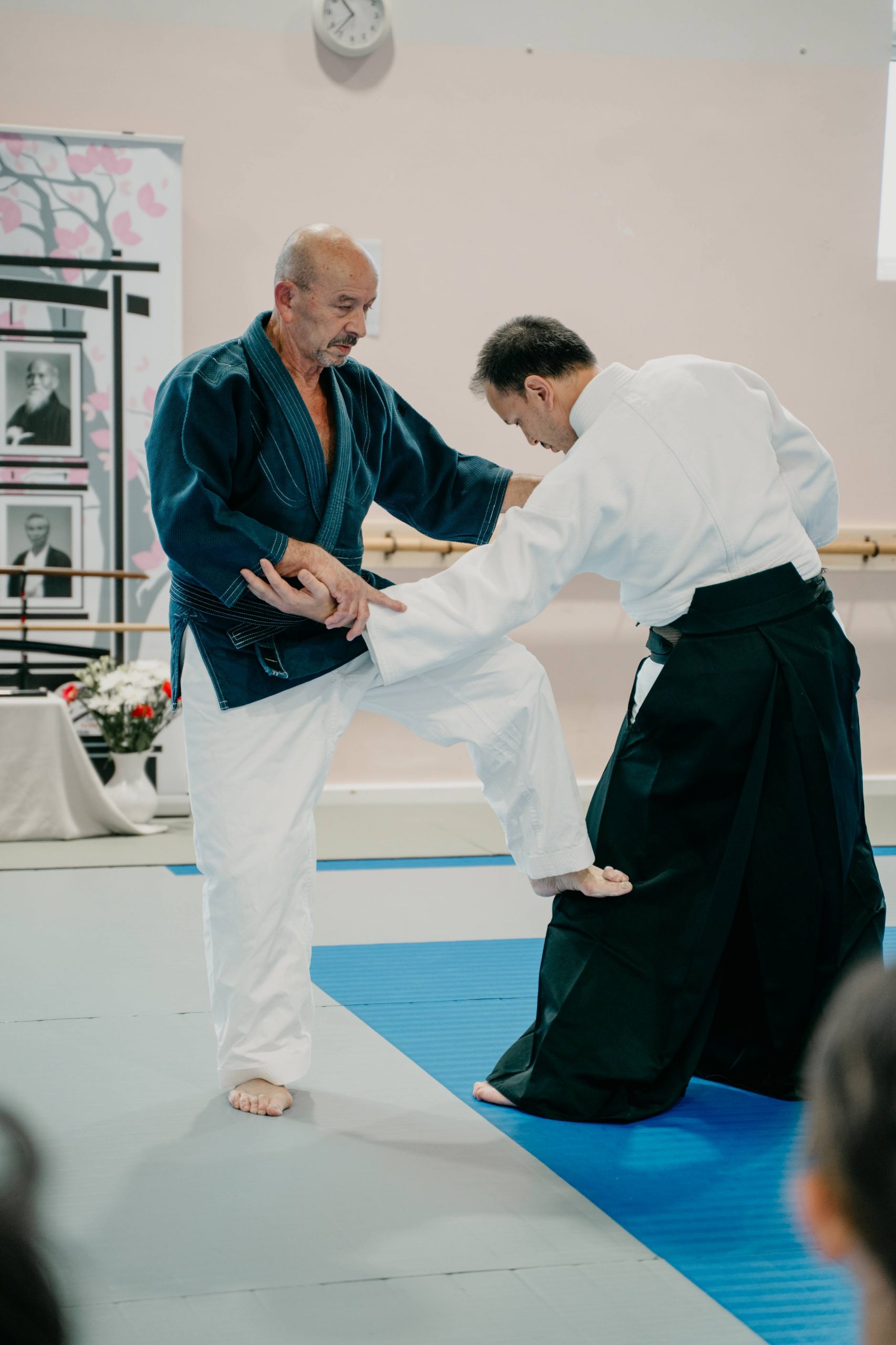 When he met Nobuyoshi TAMURA Sensei in 1973 in France, his Aikido journey began. He was impressed by the doctrine of Tamura Sensei and decided to become his student. This was the first step of the 40-year apprenticeship. He became one of the closest students to Tamura sensei with his diligence, respect, and disciplined nature. In addition, he travelled many times to Japan, where he had the opportunity to practice with different schools and masters.